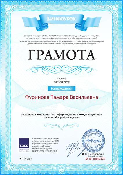 За активное использование информационно - коммуникативных технологий в работе педагога. февраль 2018 г